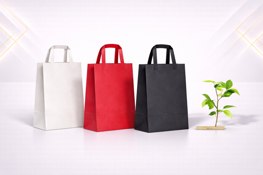 Twisted handle kraft bags provide improved grip and load-bearing strength. These bags are popular for retail shopping and offer an excellent balance between durability, functionality, and affordability.