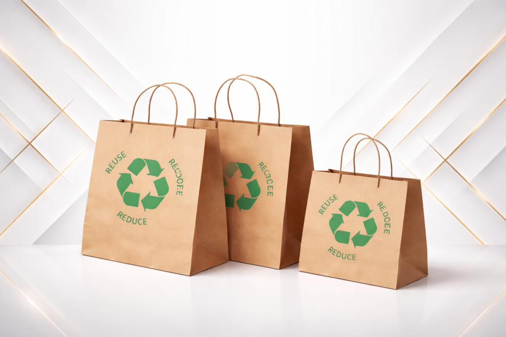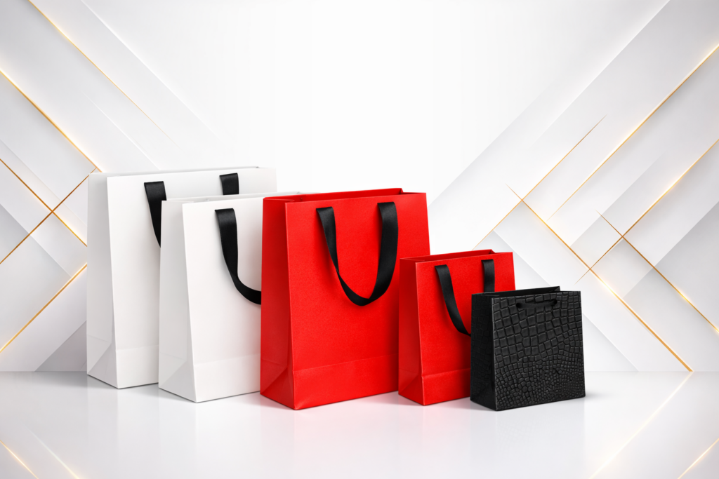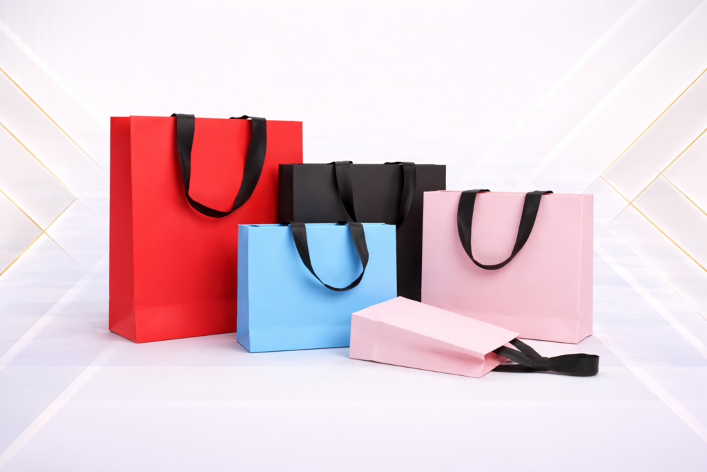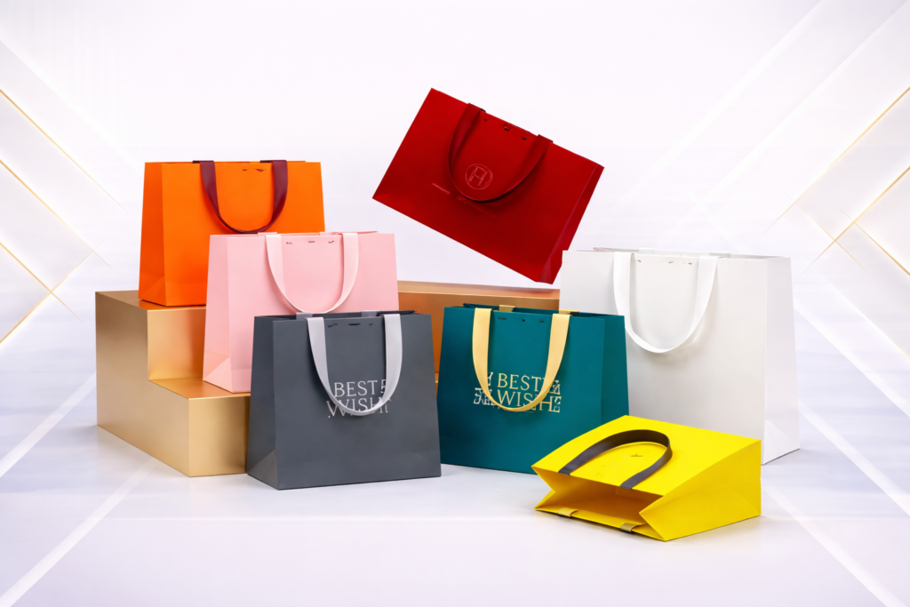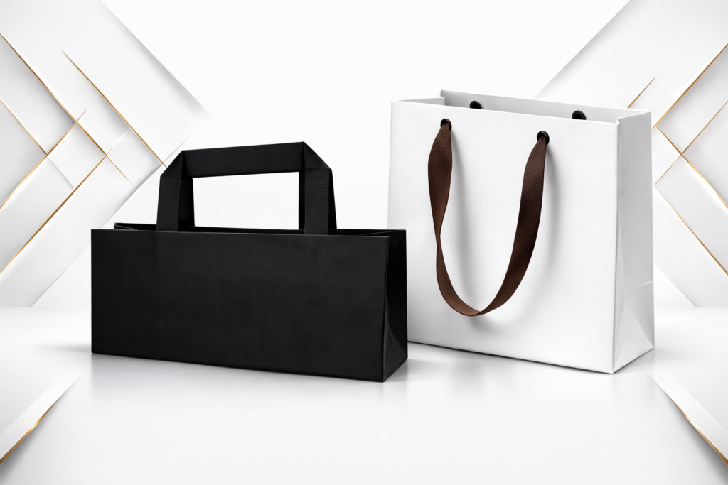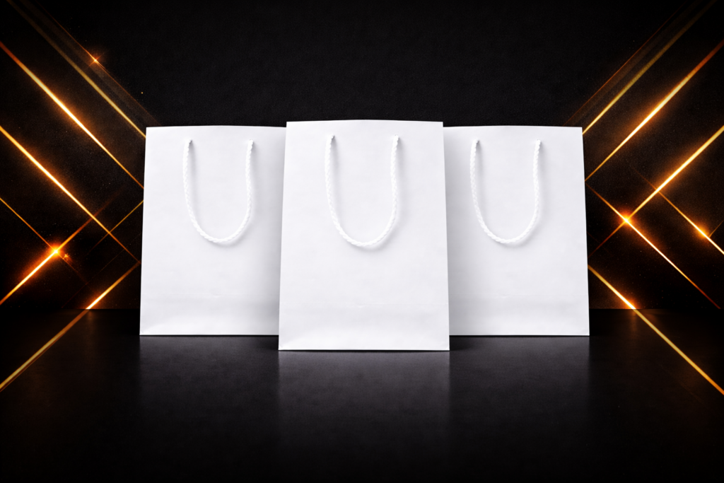 Clean and elegant paper bags ideal for high-quality printing, offering excellent color visibility and a refined appearance suitable for boutiques, corporate branding, events, and premium retail environments.