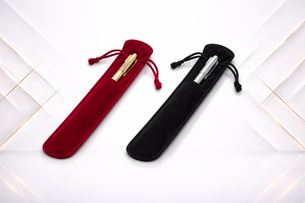 Velvet pouch inserts provide elegant packaging for premium pens. They add luxurious feel, protect pen surfaces, and improve gifting presentation for executive branding purposes.