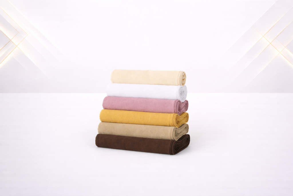 Premium, smooth, and luxurious natural fabric known for rich color depth, elegant drape, soft texture, and high-end appeal, making it ideal for designer fashion scarves and exclusive collections.