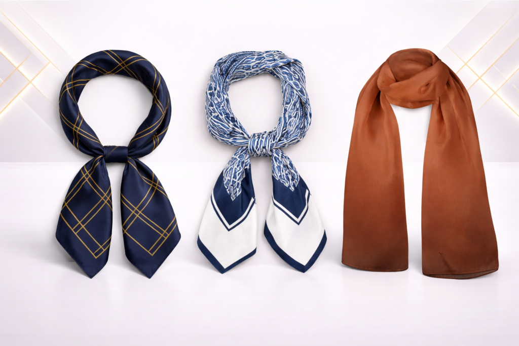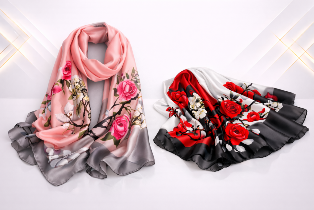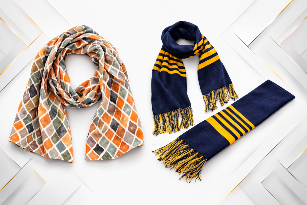 Fabric selection plays an important role in comfort, durability, and print clarity. Scarves are produced using soft, lightweight, and breathable materials suitable for various climates and occasions. Choosing the right fabric ensures vibrant color reproduction, smooth texture, excellent drape, and long-lasting performance for promotional, corporate, or fashion use.