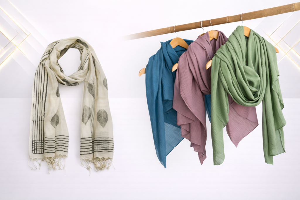 Stylish scarves created for retail and fashion collections, featuring trendy patterns, vibrant colors, soft fabrics, and premium finishing suitable for everyday wear, seasonal styling, and designer brand merchandising.
