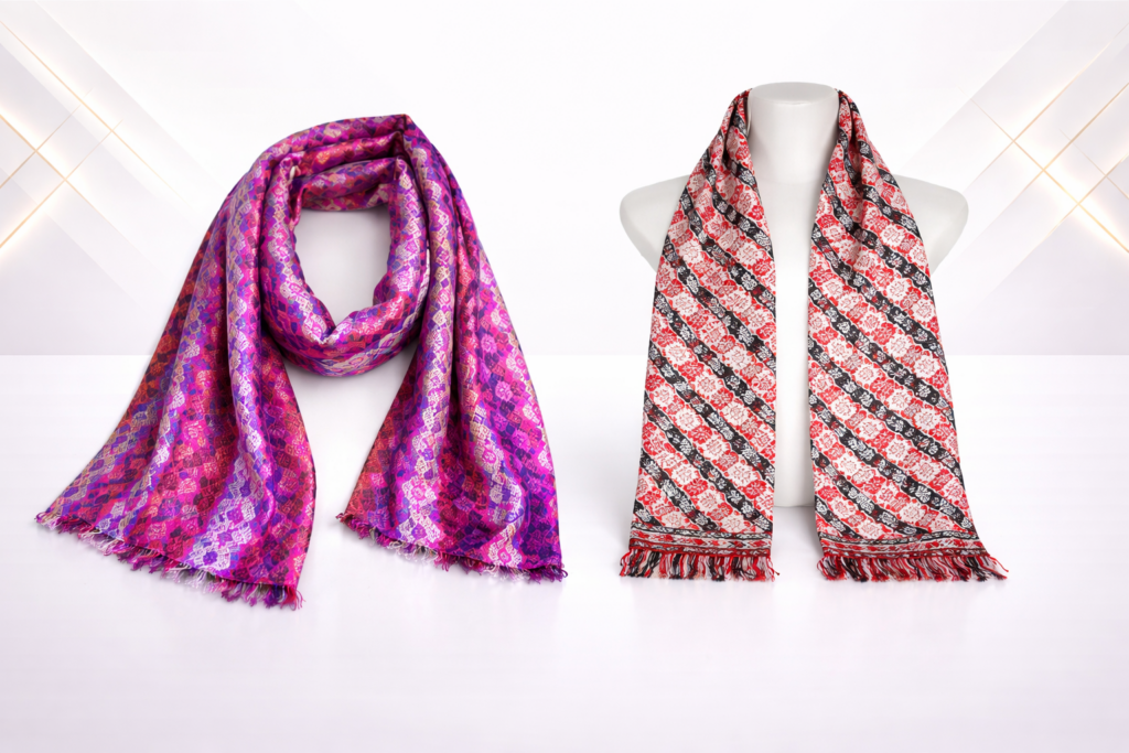 Our experienced team ensures precise printing, detailed stitching, and refined finishing for consistently high-quality scarves.